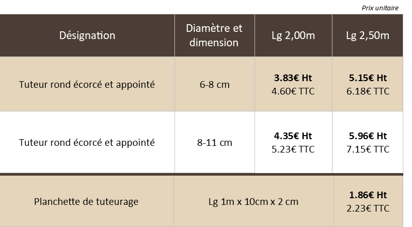 Nous vous proposons des tuteurs écorcés en châtaignier, en diam. 6/8cm et 8/11cm en Lg 2m et Lg 2m50. Planchettes de tuteurage en châtaignier, brutes de sciage: Lg 1m x 10cm x 2cm
